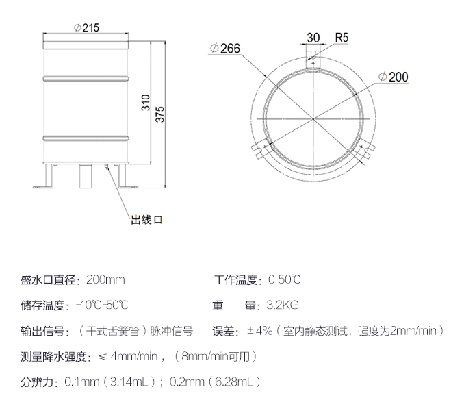 双翻斗式雨量传感器是一种水文、气象仪器,用以测量自然界降雨量,同时将降雨量转换为以开关量形式表示的数字信息量输出,以满足信息传输、处理、记录和显示等的需要。可用于气象台(站)、水文站、农林、国防、野外测报站等有关部门,配合我公司的雨量记录仪来测量降水量、降水强度、降水时间等。可为防洪、供水调度、电站水库水情管理提供原始数据。