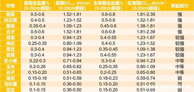 常见作物EC值适应范围
