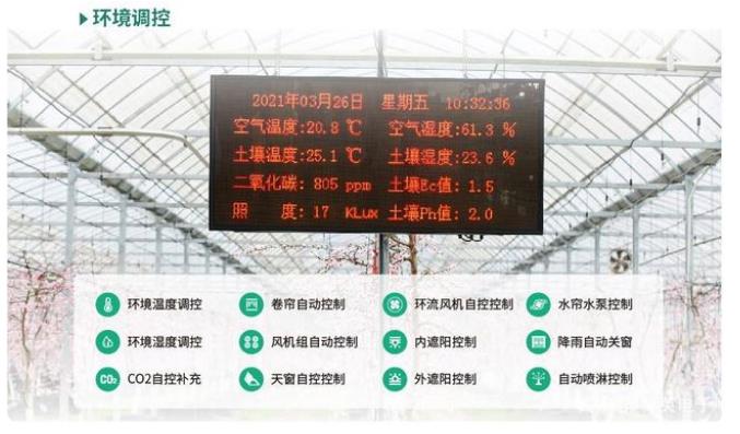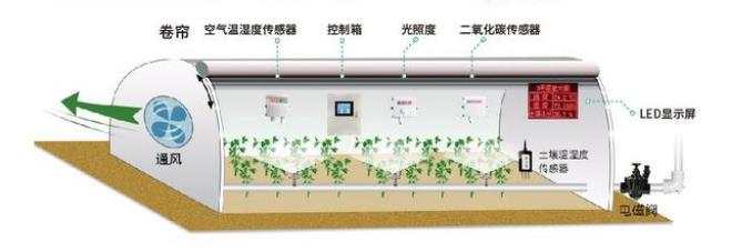 智能温室大棚系统具备实时采集温室内温湿度、土壤成分、光照强度等环境数据,并自行传输到环境监测系统,云平台处理系统自动根据监测数据与预先设定参数对比,给管理者提示、预警,可以调控室内联动系统为农产品配置适宜生长环境的能力。