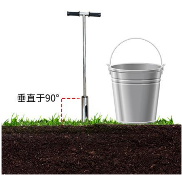 1.将土钻竖直于地面,双手紧握手柄顺时针下压慢速移动,在下压移动的时候不要太用力,可以慢速多转几圈,可以有效防止钻头跑偏以至于孔洞打歪。