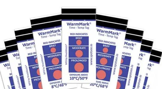WarmMark温度指示器会发出警报。通常,当暴露在可能造成损坏的温度水平下,它们会变颜色,比如从白色变成红色。WarmMark温度指示器不会储存数据,但是它可以提供物品是否经历了温度波动的证据,它是一次性的记录,且不可逆转。