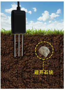 选定合适的测量地点,避开石块,确保钢针不会碰到坚硬的物体,按照所需测量深度抛开表层土,保持下面土壤原有的松紧程度,紧握传感器垂直插入土壤,插入时不可左右晃动,一个测点的小范围内建议多次测量求平均值。
