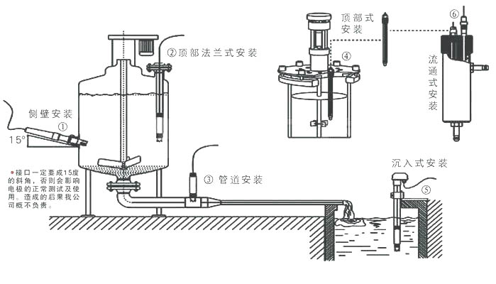用于环保与水处理工程之pH电极工业在线沉入式安装使用。另外,污水氧电极、电导率电极、余氯电极等工业在线沉入式安装如尺寸类式也可以使用