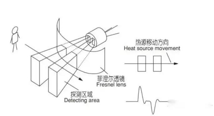 热释电传感器可以感应人体温释放的热辐射,菲尼尔透镜则可以收集和聚焦人体释放红外线。