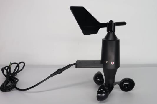 5. 三杯光耦感应器式传感器,当风杯转动时,通过主轴带动多齿转盘旋转,使下面光敏三极管接收上面发光二极管照射下来的光线,处于导通或截止状态,形成与风杯转速成正比的频率信号,通过计数器计数,换算后得到实际风速值。