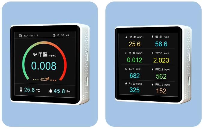 公司新出一款基于八六盒墙面安装设计的室内环境监测终端。本产品内嵌3英寸液晶显示屏,正面采用镜面设计,新颖美观。产品支持多种室内环境监测参数,如PM2.5、温湿度、甲醛、TVOC、二氧化碳等。