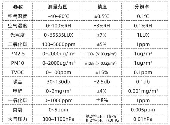 本产品单机可搭载6个常用室内环境监测项:温度、湿度、PM2.5、CO2、甲醛、TVOC。可适用于各类公共场所室内环境监测。
