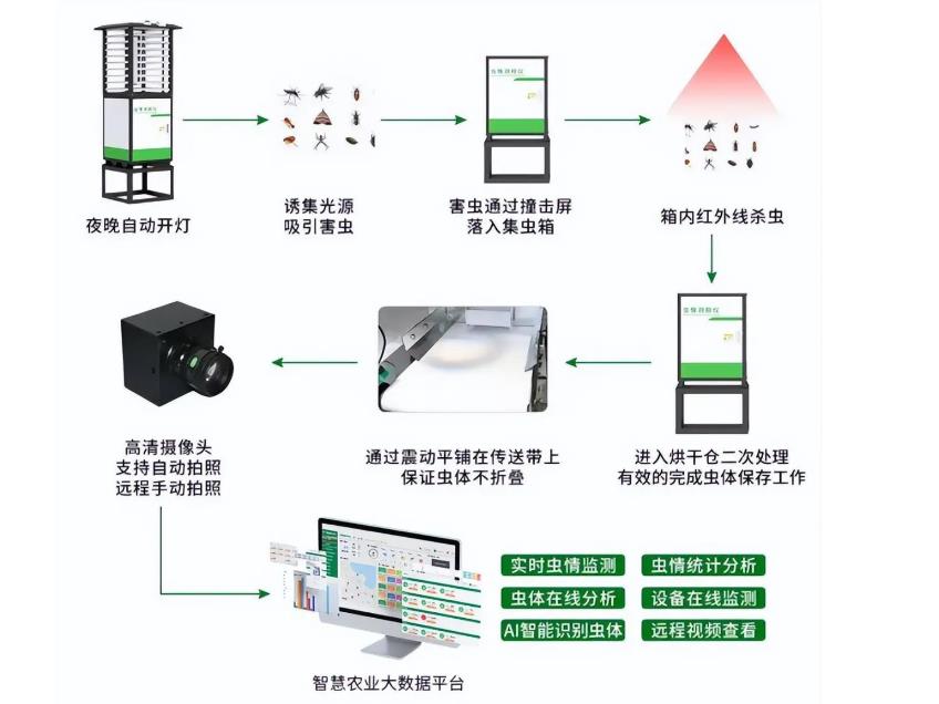 提高农业生产效率和质量:自动虫情测报灯能够实时监测农田中的虫害种类和数量,为农民提供及时、准确的虫情信息。这有助于农民及时采取防治措施,减少害虫对农作物的危害,从而提高农作物的产量和质量。