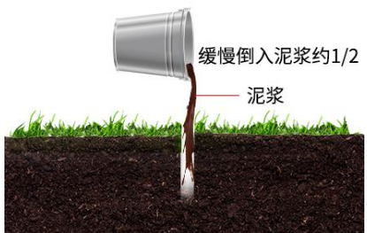 将泥浆缓慢地倒入孔洞,直至二分之一的位置,可以根据实际情况进行酌量的增减。