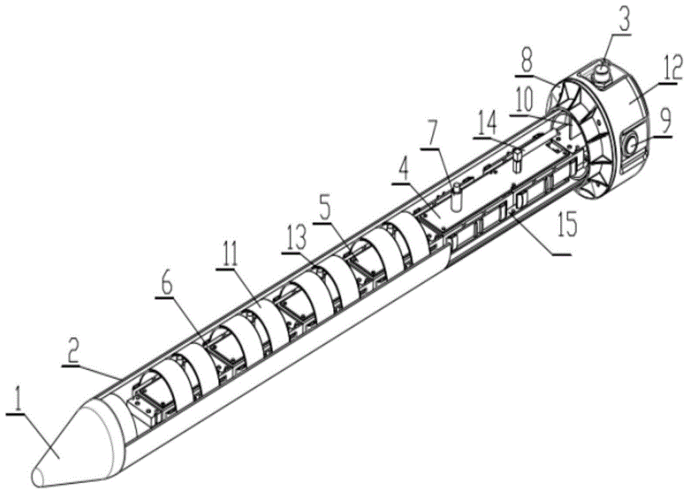 lora的多层土壤墒情监测仪,包括外壳、推头和端盖,所述外壳的一端与推头连接,另一端通过连接支架与端盖连接,所述外壳的内部设有多个温度传感器、多个湿度采集模块和主控模块,所述温度传感器、湿度采集模块均与主控模块连接,所述主控模块包括主控板、lora模块和天线。