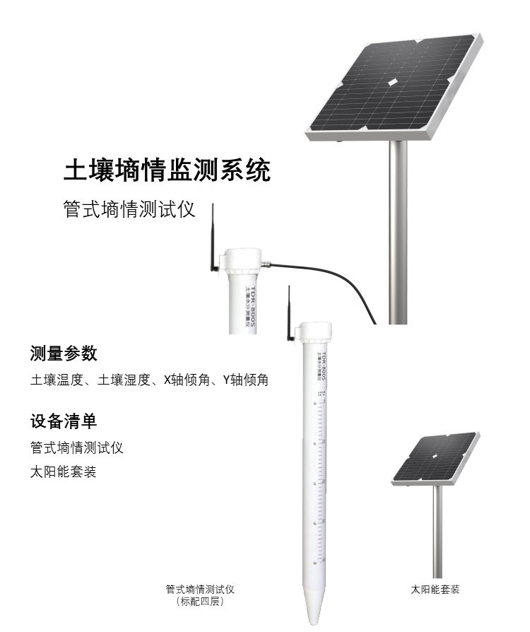 土壤墒情自动观测仪,用于对土壤墒情的检测,土壤温度、土壤湿度、土壤盐分、要素进行全天候现场监测。可以通过专业配套的数据采集通讯线与计算机进行连接,将数据传输到气象计算机气象数据库中,用于统计分析和处理。主要应用于气象、农业、地质、环境等方面,并适合于野外科研试验应用。管式土壤墒情监测站是一款高精度、高灵敏度的土壤水分测量仪器,通过测量土壤的介电常数,能直接稳定地反映各种土壤的含水量。本传感器具有功耗低,体积小,携带方便,安装、操作及维护简单等特点。适用于节水农业灌溉、温室大棚蔬菜、花卉园艺、草地牧场、土壤速测、植物培养、科学试验等领域。